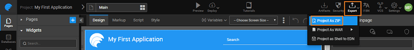 1. Export your project as a ZIP file.