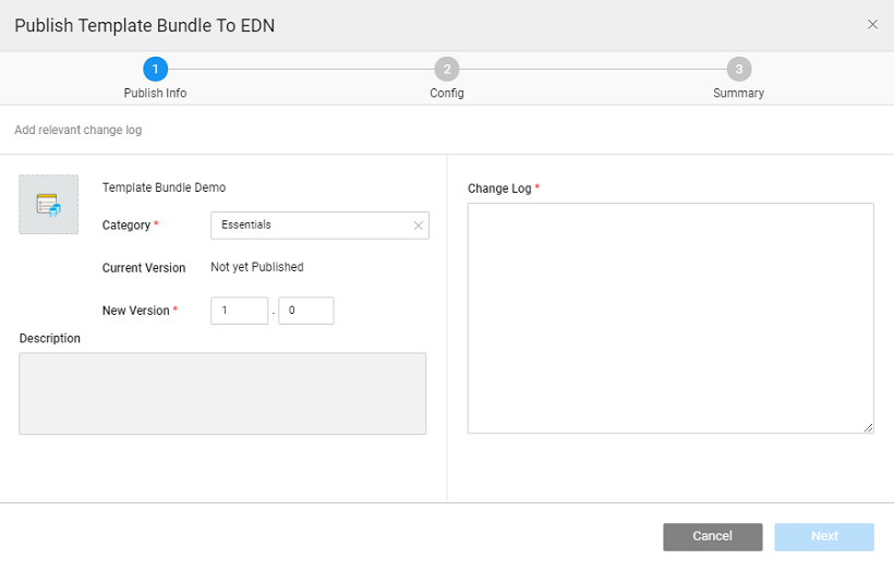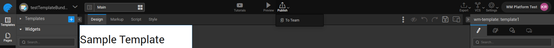 After Admin's approval, the Template Bundle is listed in the artifact repository listing. To use the Template, the app developer needs to select it from the Template Dialog while adding a Page to the app, or by using the Change Template option for an existing app.