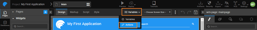 Logout Action is automatically created when you implement Security in your application. You can edit the Properties and Events of the Logout Action from the Actions dialog.
