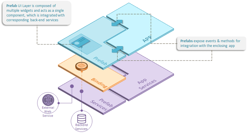 Prefab may consist of all 3 layers of a WaveMaker App, combining the power of custom widgets with any integrated service, as shown below.