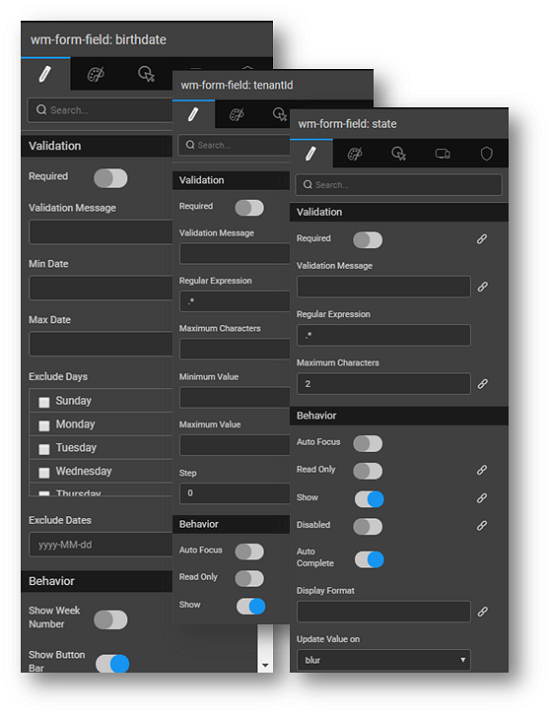 • behavior like Auto Focus, Read Only, Show etc can be set.