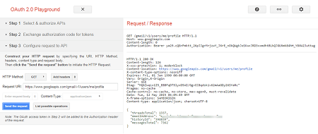 • To use Google APIs, you need to import the appropriate web service. Go to https://developers.google.com/oauthplayground/, select the required API and get the Authorization key