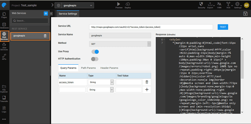 • From app designer, import a web service with the proper credentials as obtained from the above step.