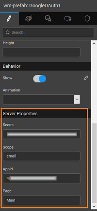 • Create an application using WaveMaker. Drag and Drop the Google OAuth PreFab onto the canvas. You can use the default login page created by WaveMaker.