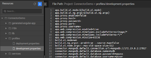 On successful import of Connector into a WaveMaker application, Connector externalizable properties are automatically profiled in the WaveMaker application profiles. The format of the Connector-profiled property is as shown below.