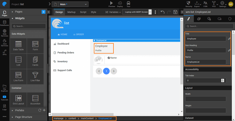 From the Canvas, you can further enhance the list design by adding/removing widgets, setting properties etc.