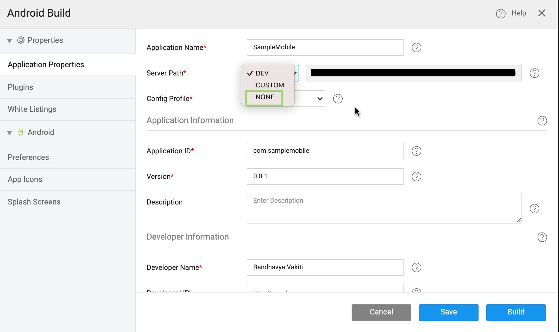 • Build for Android: Through this build, you can generate APK files which can be signed and hosted on PlayStore.