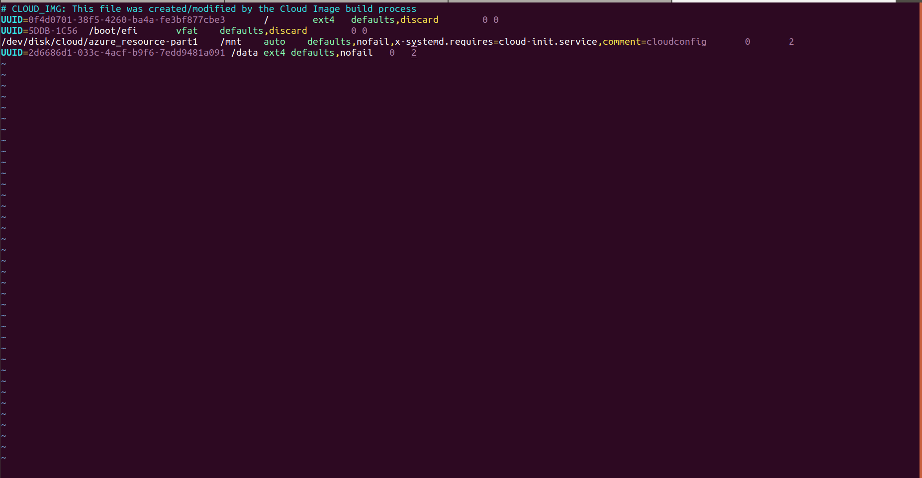 • To mount an attached Azure Disks on every system reboot, add an entry for the device to the /etc/fstab file.